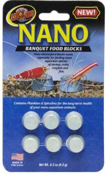 Time release food blocks made especially for feeding nano aquarium species of shrimp, crabs, crayfish and fish. Contains plankton and spirulina for the long term health of your nano aquarium animals.